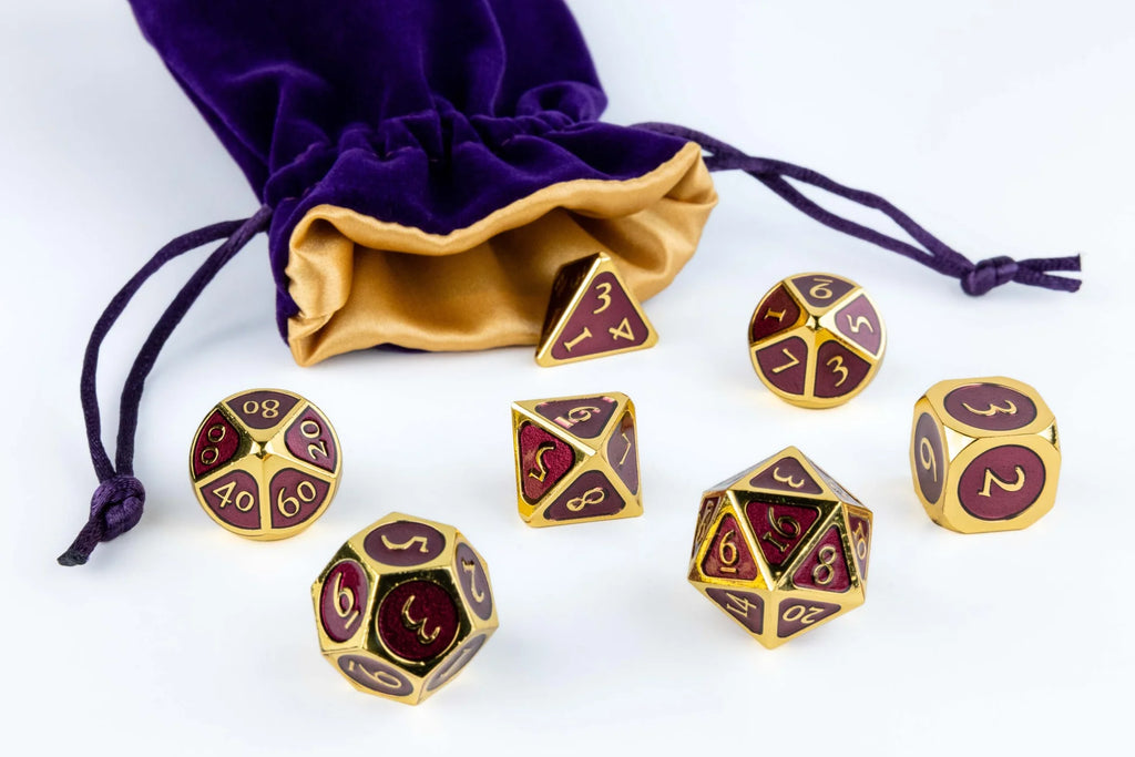 Diseño Premium: Exterior de suave terciopelo púrpura e interior de satén dorado que protege tus dados de cualquier rayadura.
