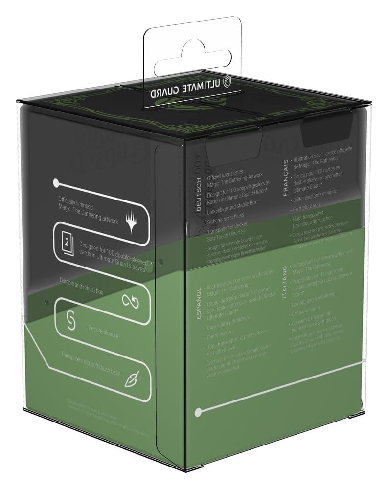 El Boulder 100+ de Ultimate Guard es una caja para mazo MTG duradera y fiable, con ilustraciones con licencia oficial del set "Lorwyn Eclipsed" de Magic: The Gathering. A pesar de su cierre seguro, el Boulder 100+ es fácil y cómodo de abrir, y puede contener 100 cartas doblemente enfundadas en fundas Ultimate Guard*, lo que lo convierte en la caja para mazo ideal para todos los formatos de Magic (Commander/EDH, Modern, Standard, etc.). Diseñado para combinarse con todas las cajas de almacenamiento masivo de Ultimate Guard, el Boulder encaja especialmente bien en Arkhive, Superhive y Flip'n'Tray.