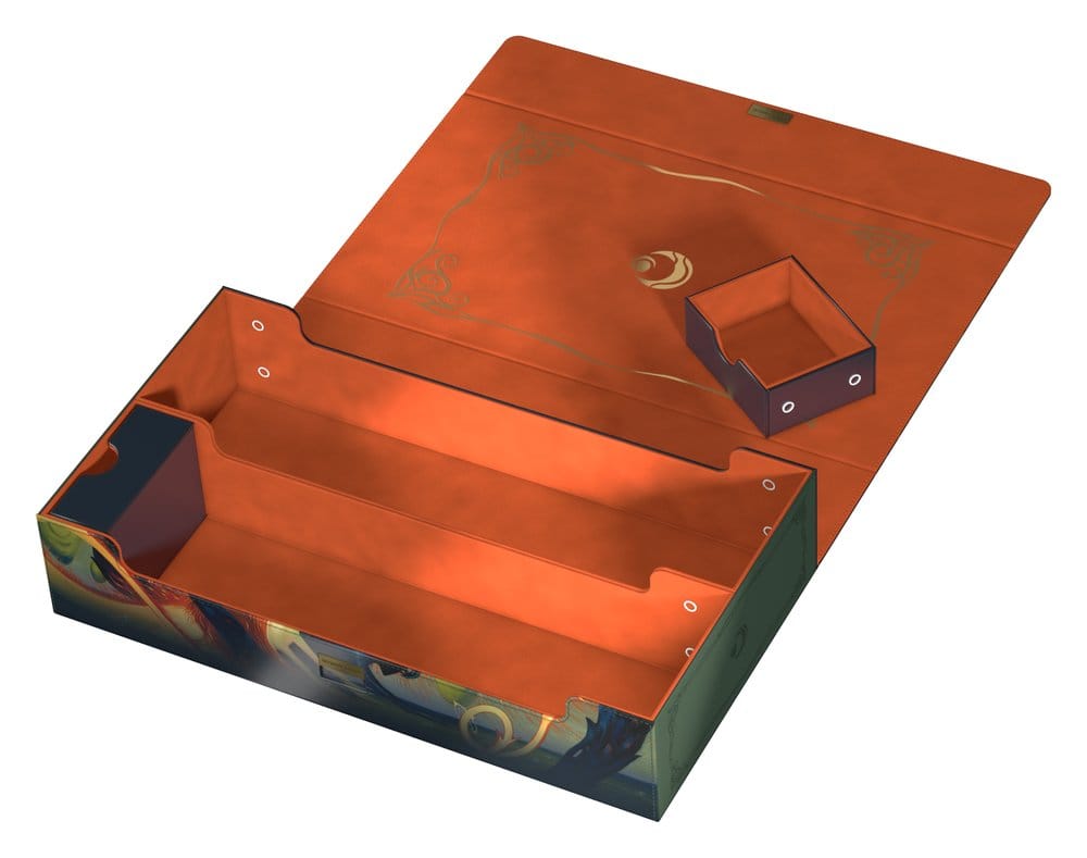 El Omnihive 1000+ Xenoskin de Ultimate Guard, con ilustraciones con licencia oficial del set "Lorwyn Eclipsed" de Magic: The Gathering, es la caja de almacenamiento masivo MTG definitiva para mazos, cartas y accesorios. Diseñada para guardar simultáneamente varias cajas para mazo y/o tapetes, cuenta con dos bandejas magnéticas para dados, apilables y de posición flexible, situadas sobre dos compartimentos, además de material Xenoskin resistente, un forro interior de microfibra de alta calidad, un cierre magnético fuerte y el fiable mecanismo ZnapClaw de Ultimate Guard. Con capacidad para ocho Sidewinder 100+ o seis Sidewinder 133+, el Omnihive 1000+ Xenoskin también puede albergar hasta 1000 cartas doblemente enfundadas en fundas Ultimate Guard*, lo que lo convierte en la caja ideal para un cube.