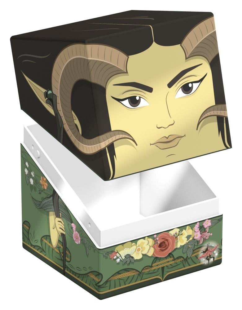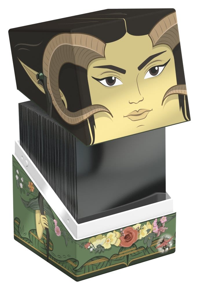 Caja coleccionable para almacenar mazos de TCG, accesorios de juegos de mesa y/o objetos de colección. El Maralen Squaroe de la edición Magic: The Gathering puede contener hasta 100 cartas con fundas dobles si se usa como caja de mazo. Los Squaroes están hechos con un 78% de recursos renovables.