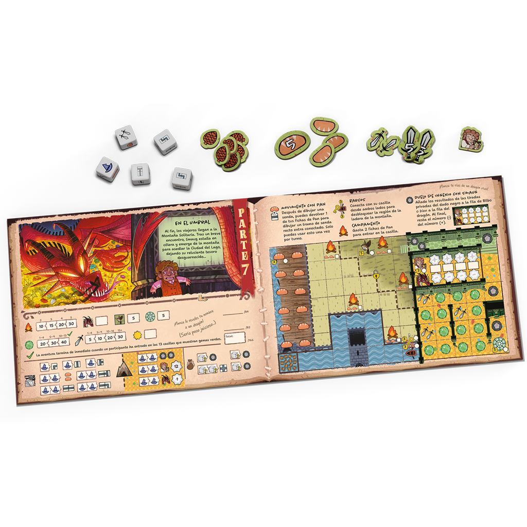 El juego de dados sobre el viaje de Bilbo a la Montaña Solitaria, contado en 8 aventuras únicas.