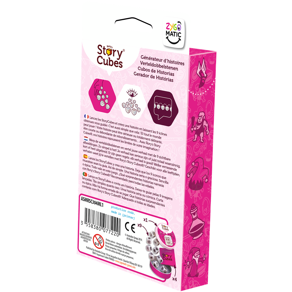 Story Cubes Fantasía es un juego enormemente divertido, que agudiza tu ingenio y afina tu imaginación. Las imágenes fueron diseñadas por Rory O'Connor, un irlandés especializado en entrenar la creatividad y solucionar problemas creativos. Se pueden utilizar para llegar a respuestas o decisiones de una manera indirecta e ingeniosa. Cada dado tiene 6 imágenes o iconos, un total de 54 ideas que mezcladas pueden generar más de 10 millones de combinaciones.