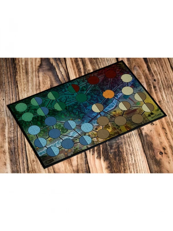 El tablero incluye dos campos de batalla: el oscuro y peligroso Bosque de Fayrlund y la fortaleza de los brujos, Kaer Morhen, con el regreso de los caminos unidireccionales para un posicionamiento aún más táctico.