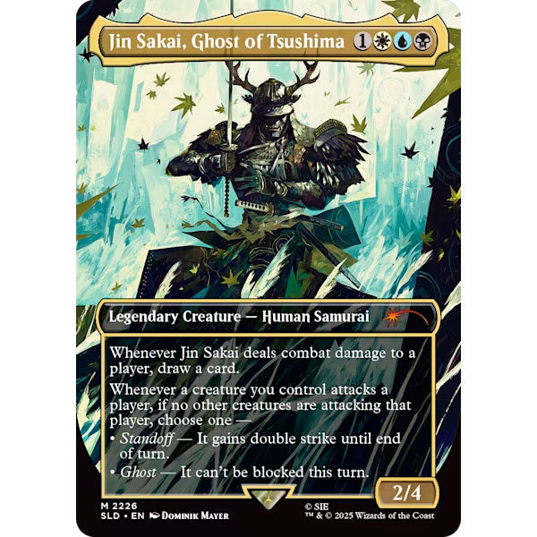 La historia del viaje de Jin Sakai para convertirse en el Fantasma de Tsushima caló hondo entre los fans en 2020. Su periplo fue uno de autodescubrimiento, tragedia y redención. Mientras los fans se preparan para el próximo y esperadísimo Ghost of Yotei, Secret Lair se enorgullece de llevar los personajes y conceptos de Ghost of Tsushima a Magic: The Gathering con este drop.