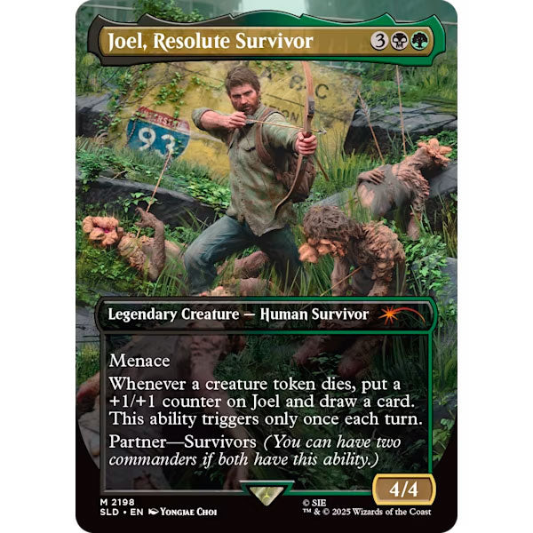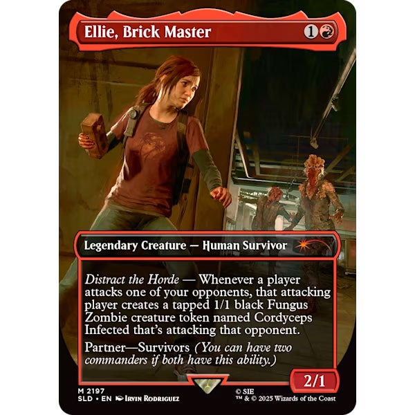 NOTA: La mecánica Partner—Survivors permite jugar las cartas de Joel y Ellie de Secret Lair x The Last of Us Part I con las cartas de Abby y Ellie de Secret Lair x The Last of Us Part II. Esto significa que, técnicamente, Ellie puede juntarse con su yo más joven (y Abby puede juntarse con Joel si eres un monstruo).