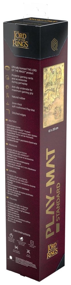 El Play-Mat de 61 x 35 cm de la edición oficial The Lord of the Rings™ "Places of Middle-earth" de Ultimate Guard protege cartas y fundas durante el juego y mejora la experiencia de juego gracias a su reverso antideslizante, mientras que los bordes cosidos garantizan una mayor durabilidad.